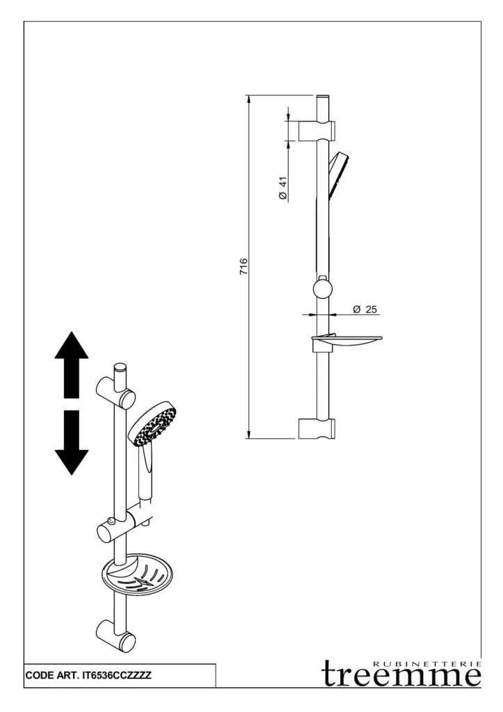 Treemme Shower Душевой гарнитур: душевая лейка 3 вид струи, штанга, мыльница, цвет: chrome IT6536CCZZZZ