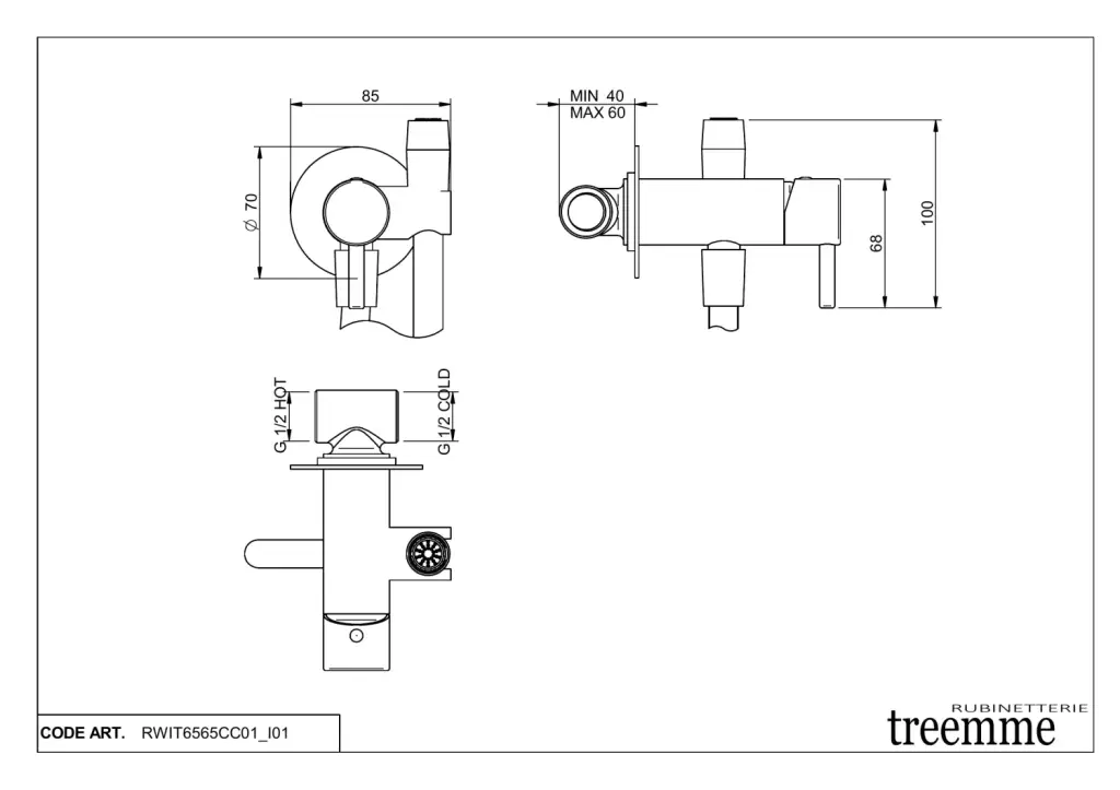 Treemme Shower Гигиенический душ со смесителем и внутренней частью на 1 вид струи, цвет: chrome RWIT6565CC01