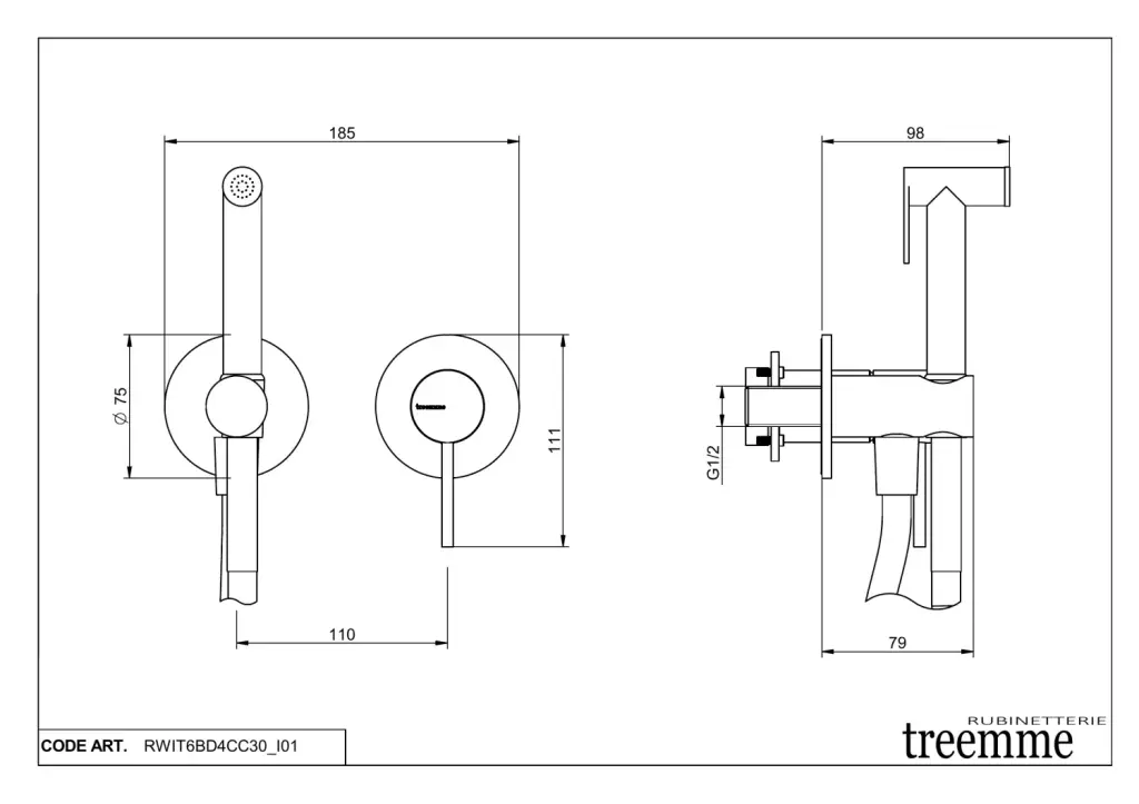 Treemme Shower Гигиенический душ со смесителем на 1 вид струи, цвет: chrome RWIT6BD4CC30