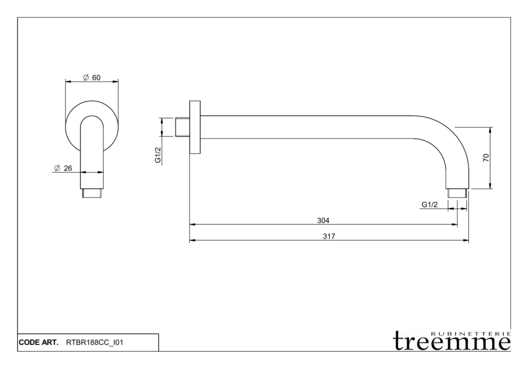 Treemme Shower Кронштейн для верхнего душа настенный 31,7 см, цвет: polished nickel ITRTBR188NL