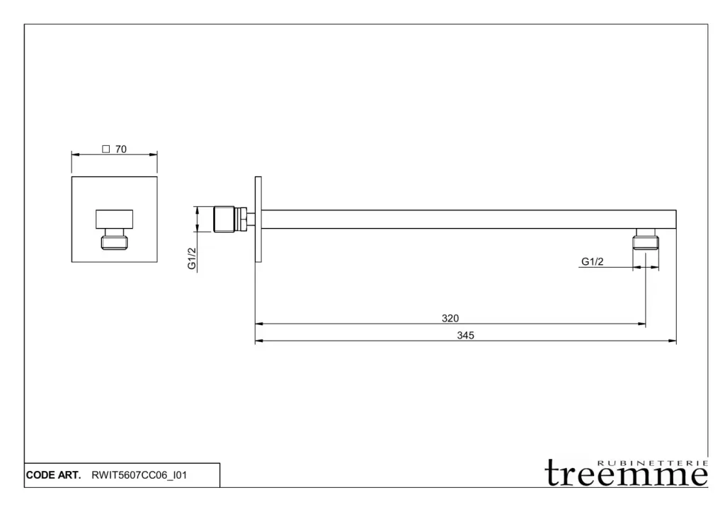 Treemme Shower Кронштейн для верхнего душа настенный 34,5 см, цвет: chrome RWIT5607CC06