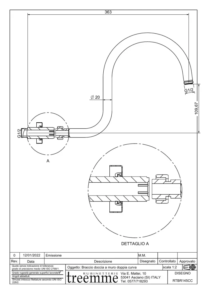 Treemme Shower Кронштейн для верхнего душа настенный 36,3 см, цвет: chrome ITRTBR145CC