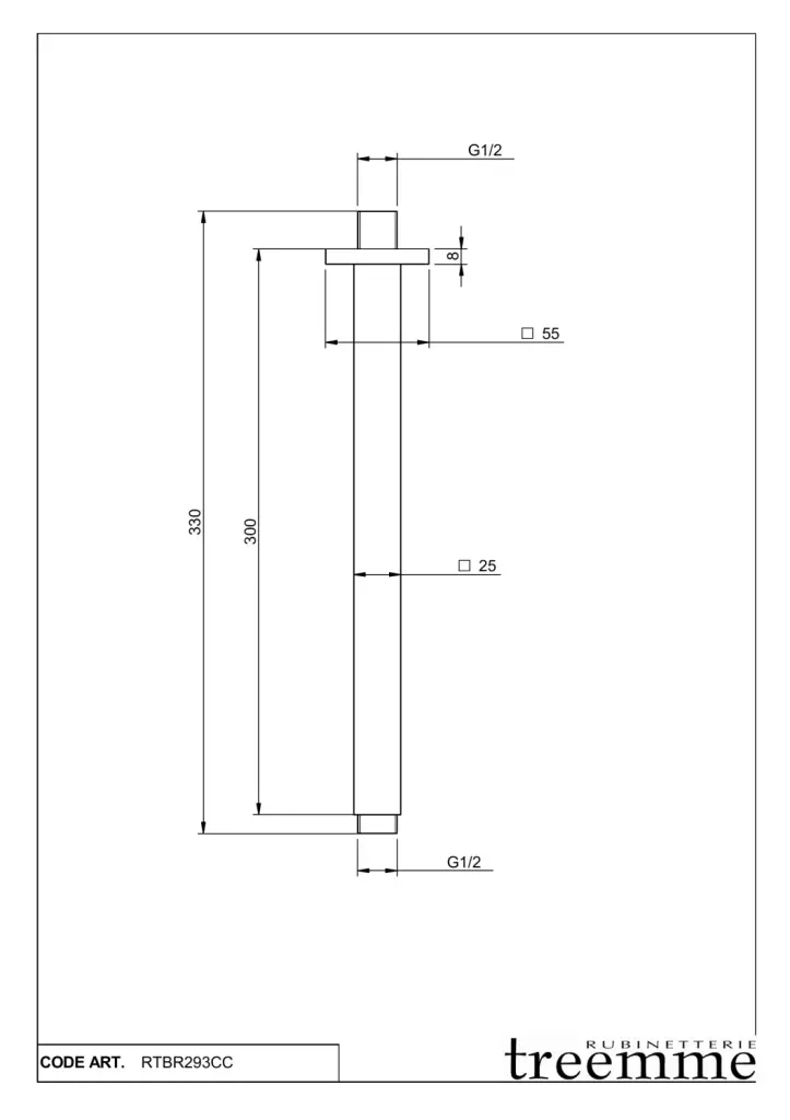 Treemme Shower Кронштейн для верхнего душа потолочный 33 см, цвет: chrome ITRTBR293CC