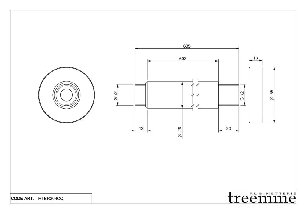 Treemme Shower Кронштейн для верхнего душа потолочный 63,5 см, цвет: chrome ITRTBR204CC