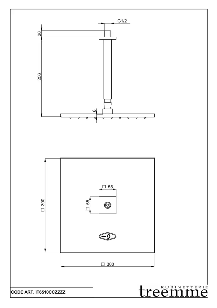 Treemme Shower Потолочный душ 30 см, 1 вид струи, цвет: chrome IT6510CCZZZZ