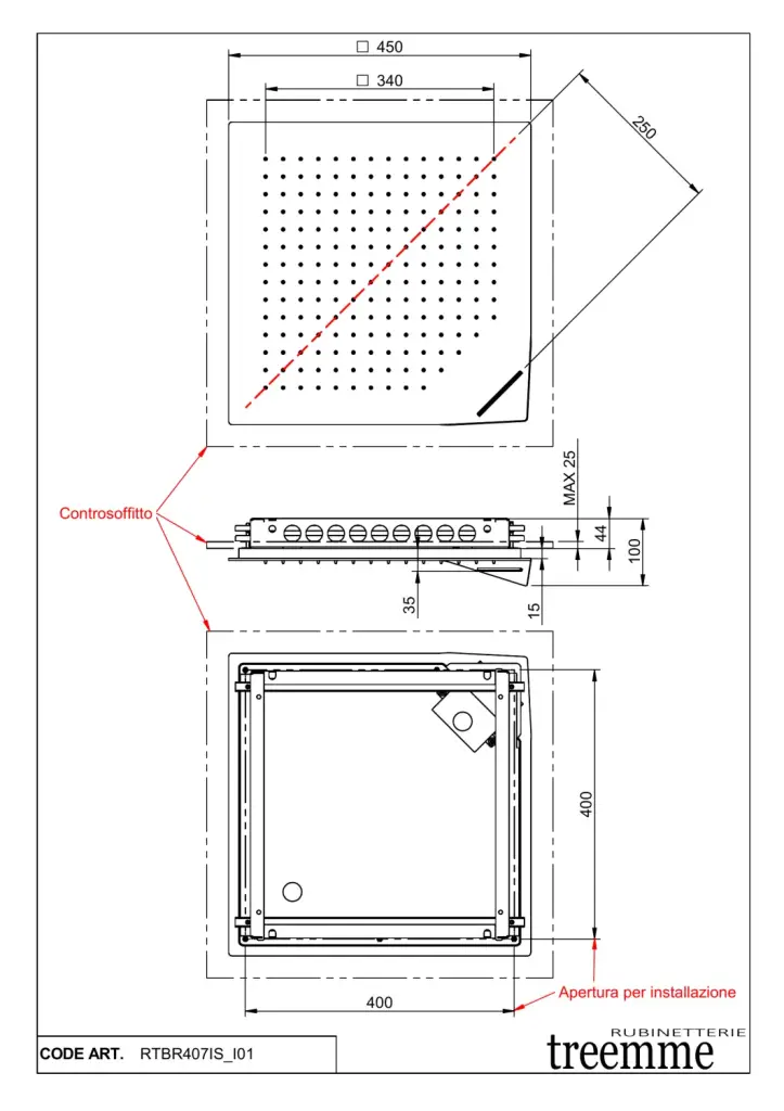 Treemme Shower Потолочный душ встраиваемый 45 см, 2 вида струи, цвет: chrome ITRTBR407CC