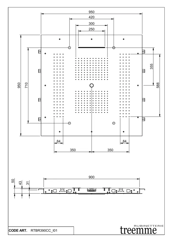 Treemme Shower Потолочный душ встраиваемый 95 см, 5 видов струи, с функцией тумана, цвет: chrome ITRTBR390CC