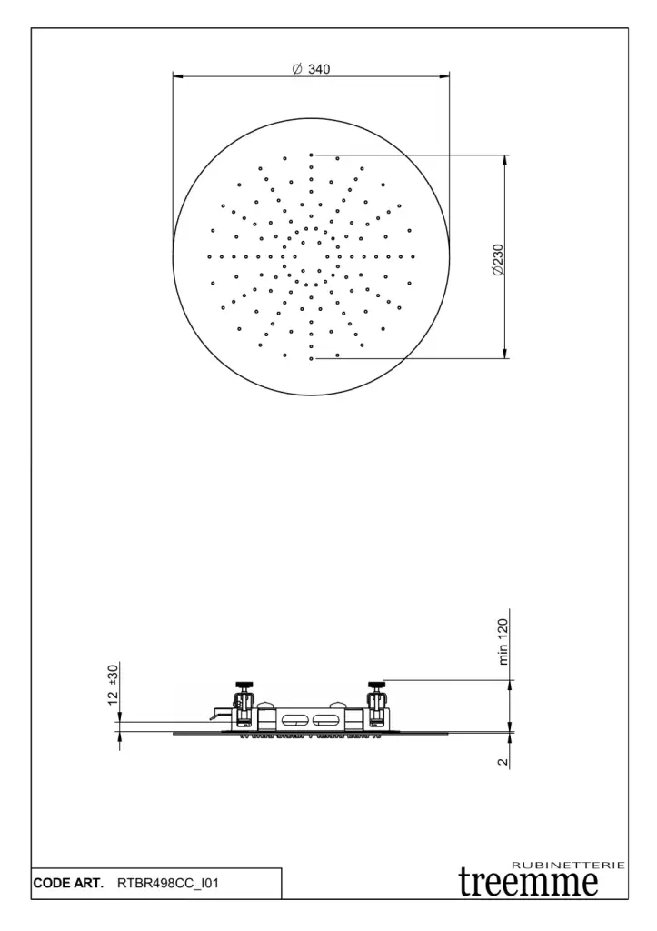 Treemme Shower Потолочный душ встраиваемый d34 см, 1 вид струи, цвет: chrome ITRTBR498CC