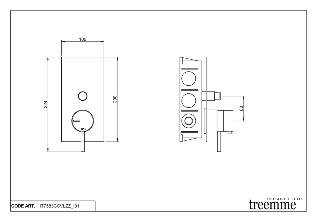 Treemme Shower Смеситель для душа термостатический встраиваемый, 2 потреб., внеш. часть, цвет:chrome IT7583CCVLZZ