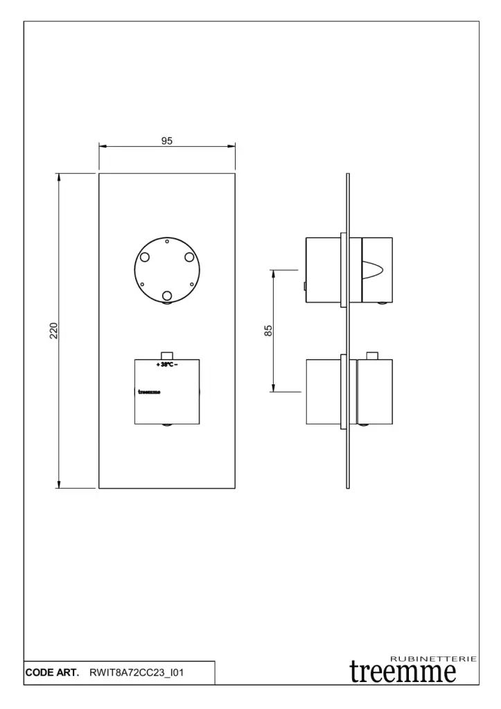 Treemme Shower Смеситель для душа термостатический встраиваемый, 2 потребителя, цвет: chrome RWIT8A72CC23