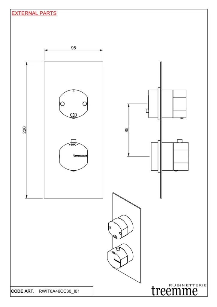 Treemme Shower Смеситель для душа термостатический встраиваемый, 2 потребителя, цвет: chrome RWIT8A46CC30