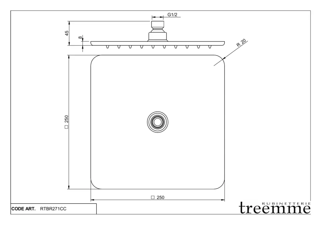 Treemme Shower Верхний душ 25 см, 1 вид струи, цвет: chrome ITRTBR271CC