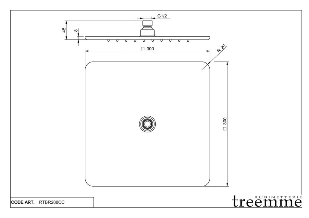 Treemme Shower Верхний душ 30 см, 1 вид струи, цвет: chrome ITRTBR288CC