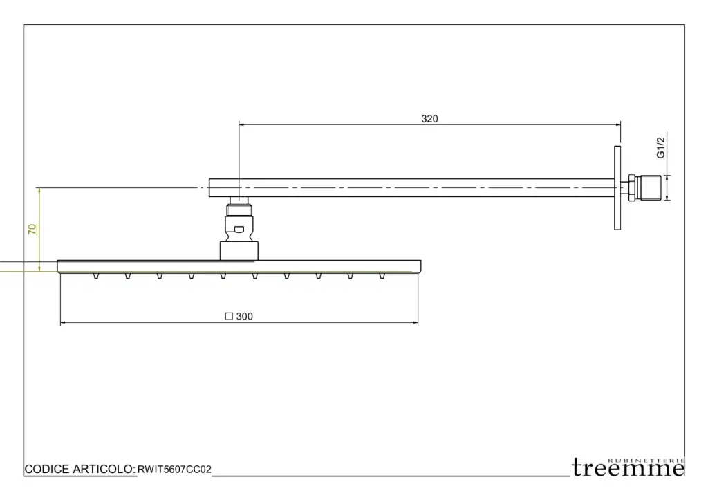 Treemme Shower Верхний душ 30 см, 1 вид струи, кронштейн 32 см, цвет: chrome RWIT5607CC02