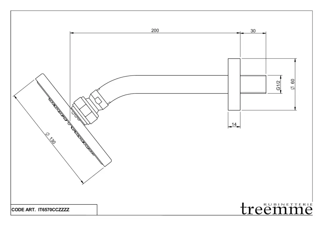 Treemme Shower Верхний душ d13 см, 1 вид струи, кронштейн настенный 20 см, цвет: chrome IT6570CCZZZZ