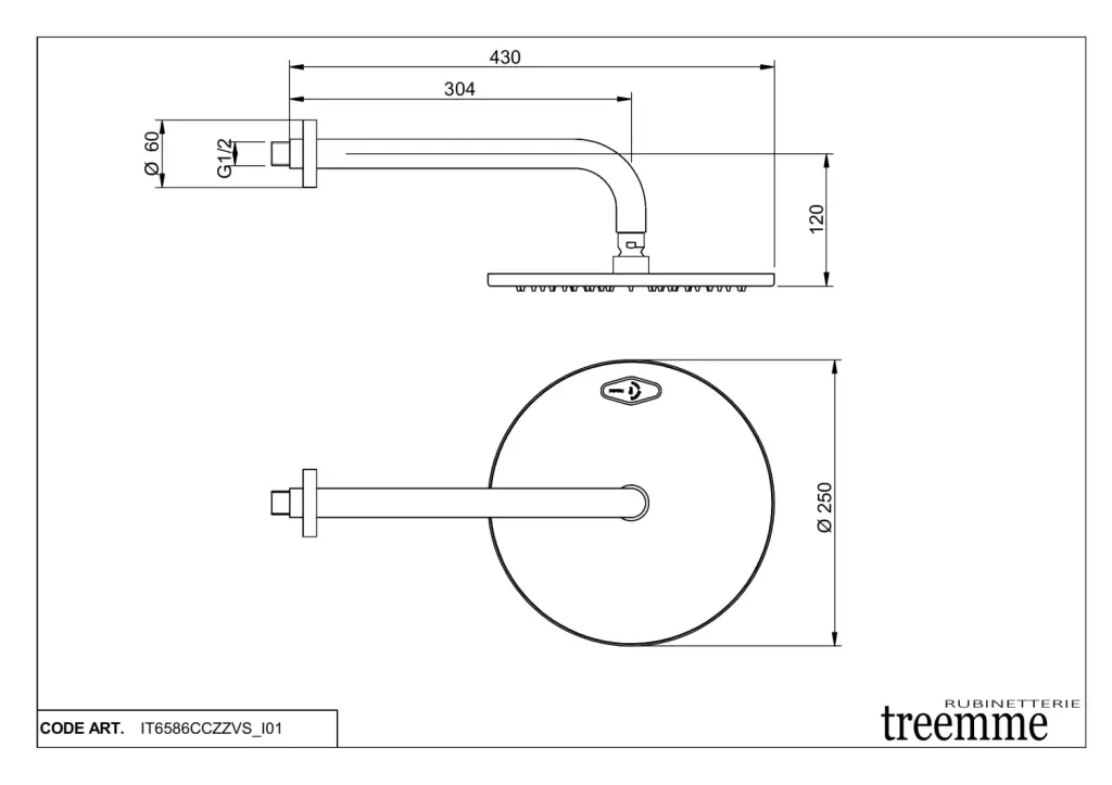 Treemme Shower Верхний душ d25 см, 1 вид струи, кронштейн 30,4 см, цвет: chrome IT6586CCZZVS