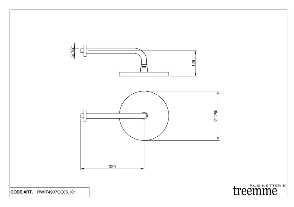 Treemme Shower Верхний душ d25 см, 1 вид струи, кронштейн настенный 32 см, цвет: chrome RWIT4907CC05