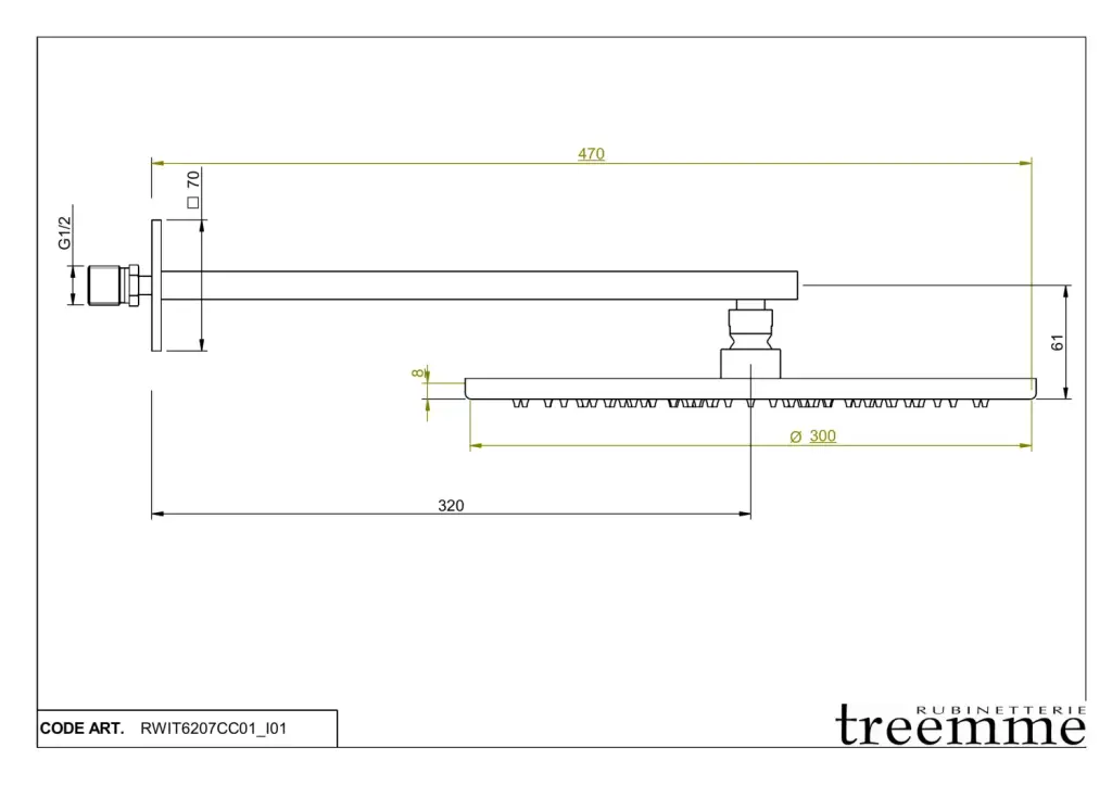 Treemme Shower Верхний душ d30 см, 1 вид струи, кронштейн 32 см, цвет: chrome RWIT6207CC01