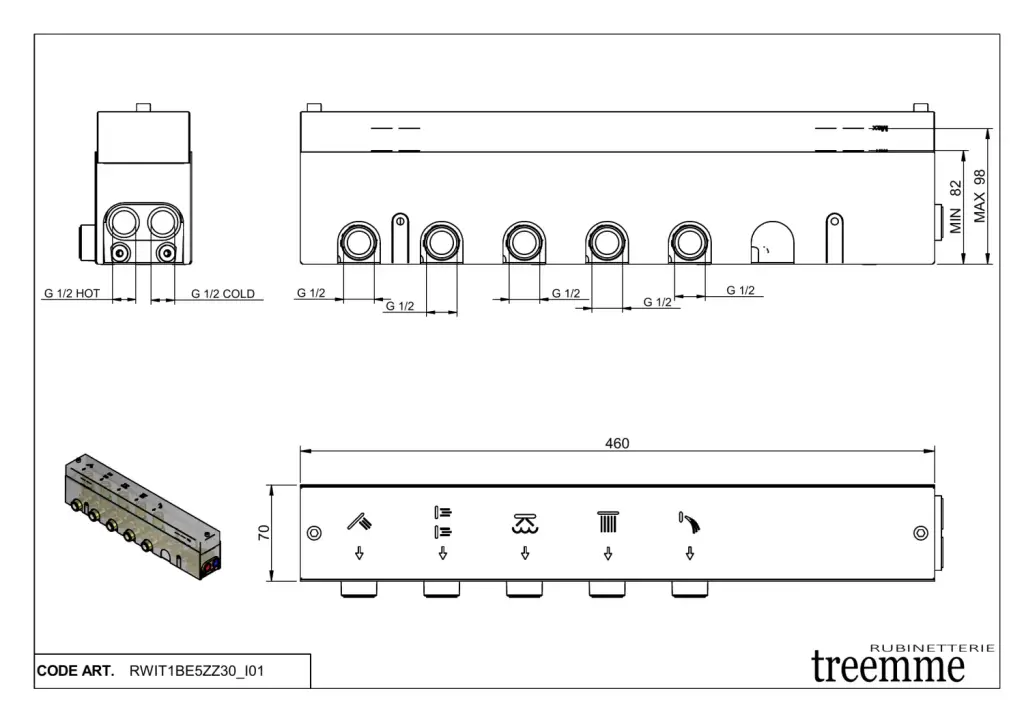 Treemme Shower Встраиваемая часть для смесителя с переключателем на 5 потребителей RWIT1BE5ZZ30