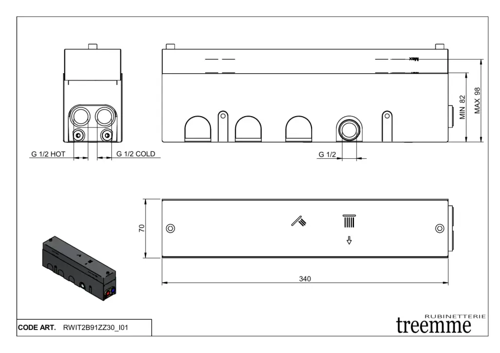 Treemme Shower Встраиваемая часть для смесителя с переключателем на 2 потребителя RWIT2B91ZZ30