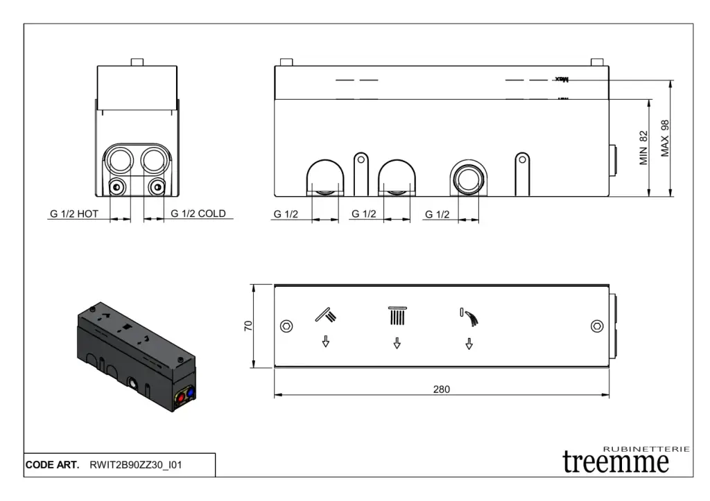 Treemme Shower Встраиваемая часть для смесителя с переключателем на 3 потребителя RWIT2B90ZZ30