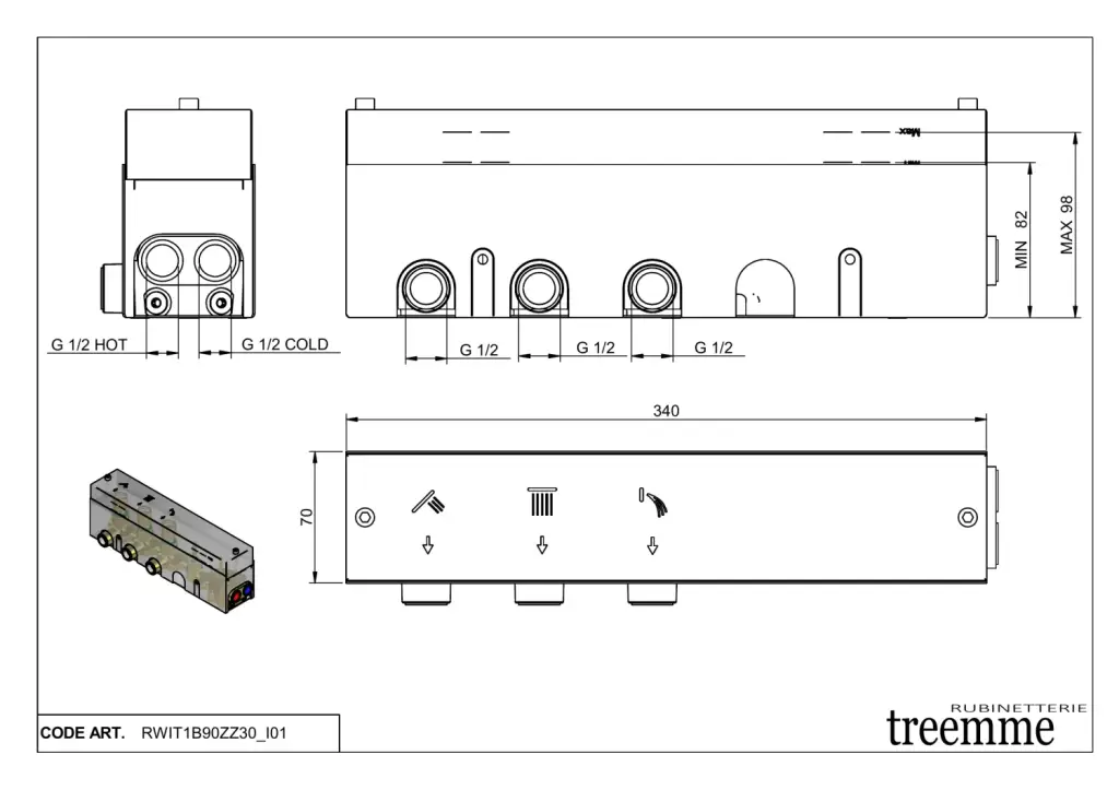 Treemme Shower Встраиваемая часть для смесителя с переключателем на 3 потребителя RWIT1B90ZZ30