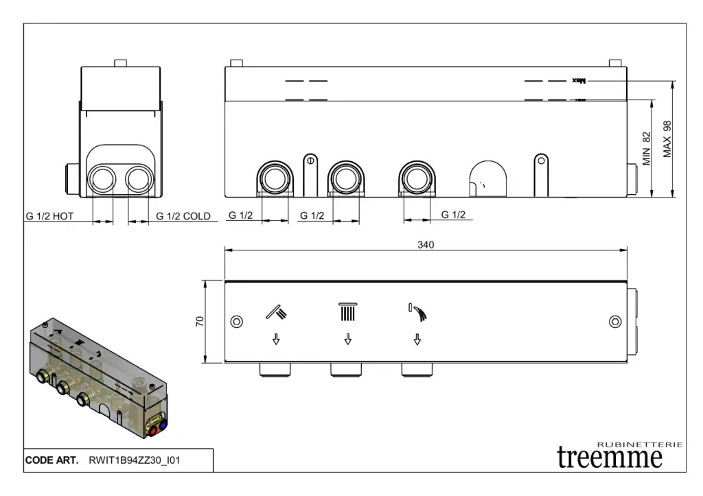 Treemme Shower Встраиваемая часть для термостатического смесителя на 3 потребителя RWIT1B94ZZ30