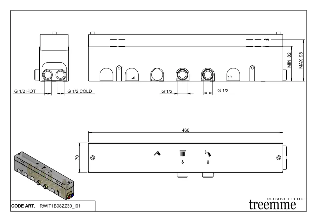 Treemme Shower Встраиваемая часть для термостатического смесителя на 3 потребителя RWIT1B98ZZ30