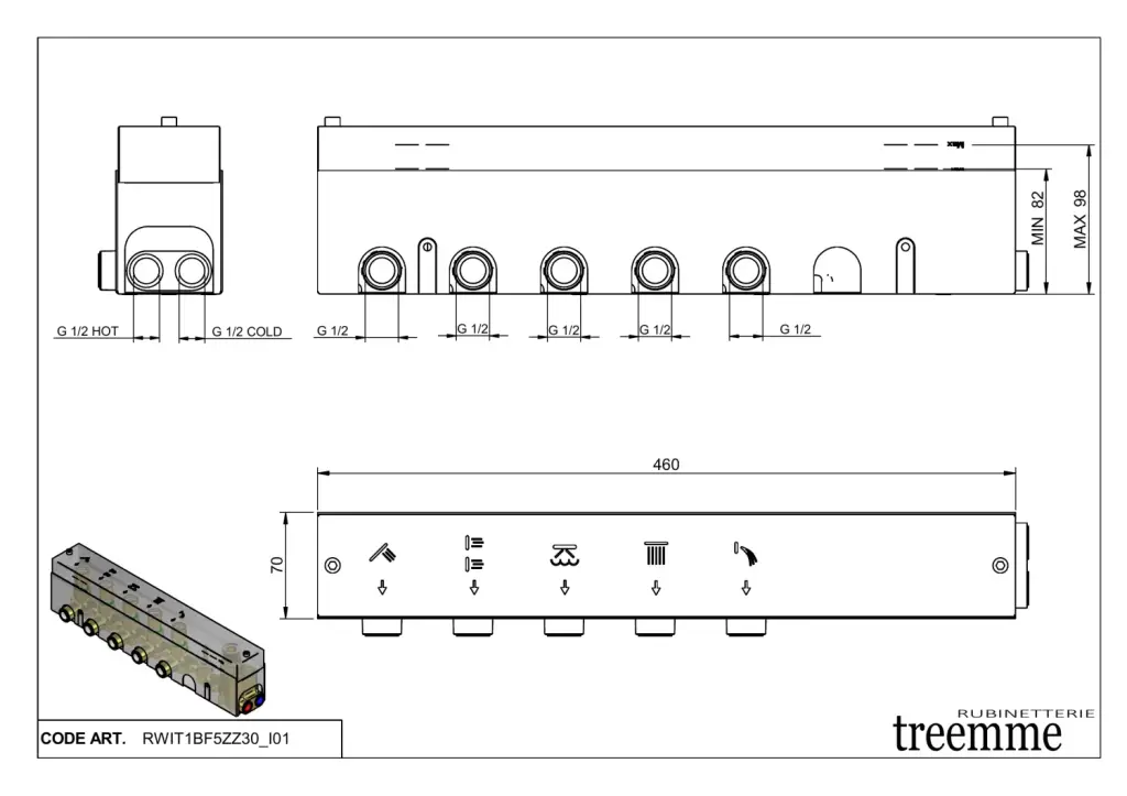 Treemme Shower Встраиваемая часть для термостатического смесителя на 5 потребителей RWIT1BF5ZZ30