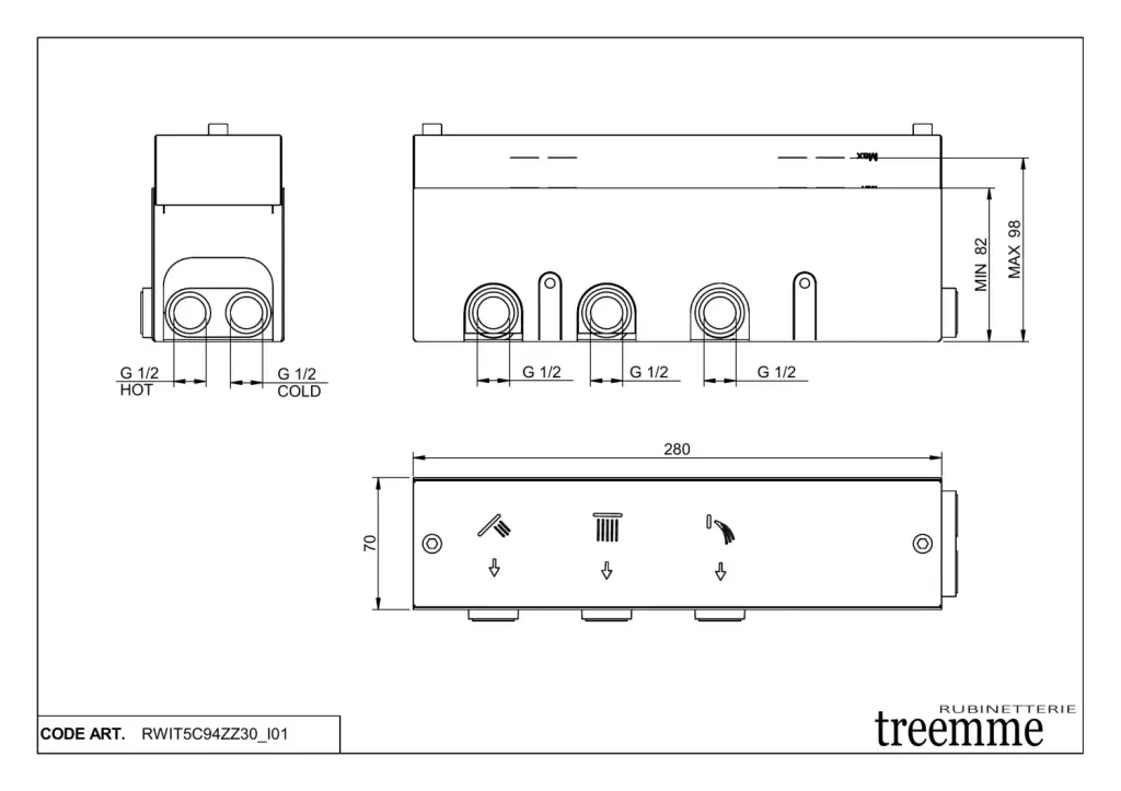 Treemme Shower Встраиваемая часть для термостатического смесителя на 3 потребителя RWIT5C94ZZ30