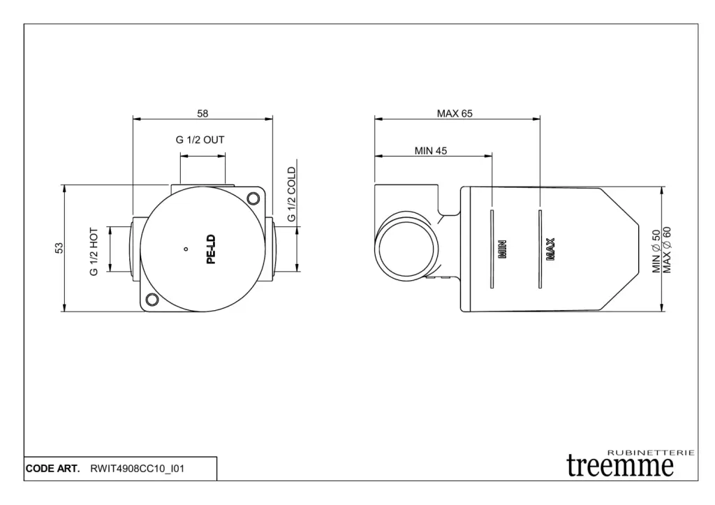 Treemme Shower Встраиваемая часть смесителя для душа на 1 потребитель RWIT4908CC10