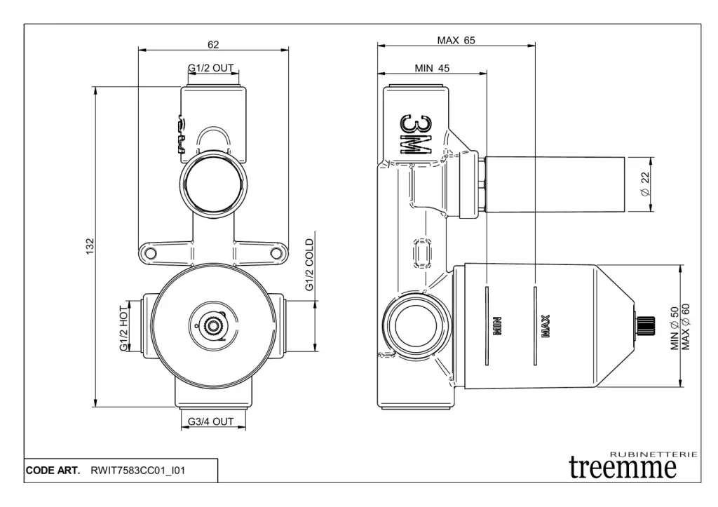 Treemme Shower Встраиваемая часть смесителя для душа/ванны на 2 потребителя RWIT7583CC01