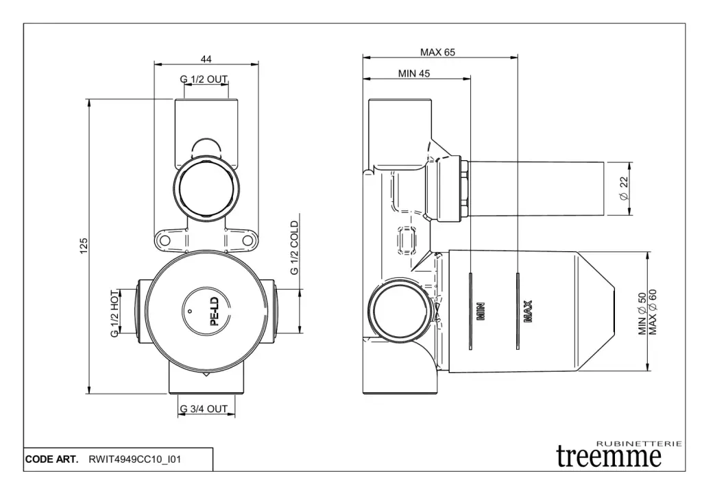 Treemme Shower Встраиваемая часть смесителя для душа/ванны на 2 потребителя RWIT4949CC10