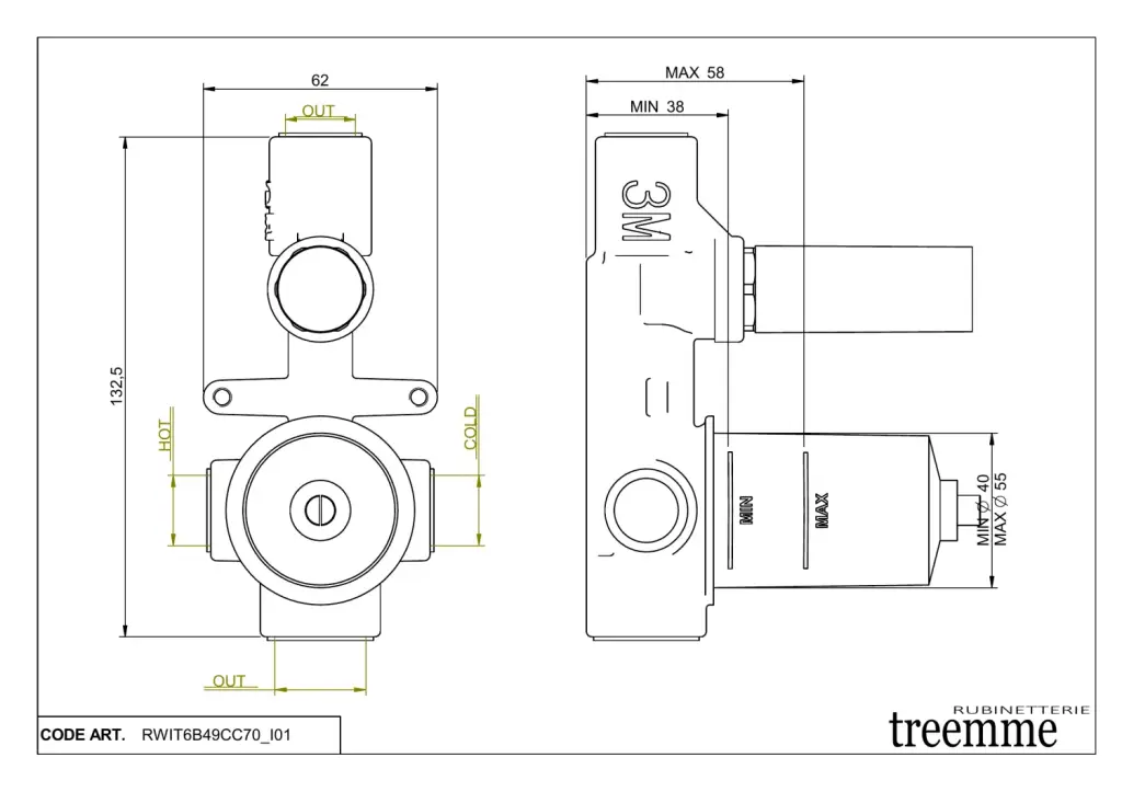 Treemme Shower Встраиваемая часть смесителя для душа/ванны на 2 потребителя RWIT6B49CC70