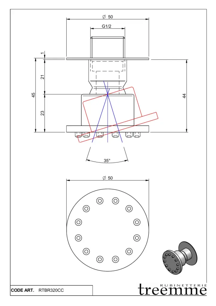 Treemme Showers Inox Душевая форсунка настенная 5x4,5 см, цвет: нержавеющая сталь ITRTBR320IS