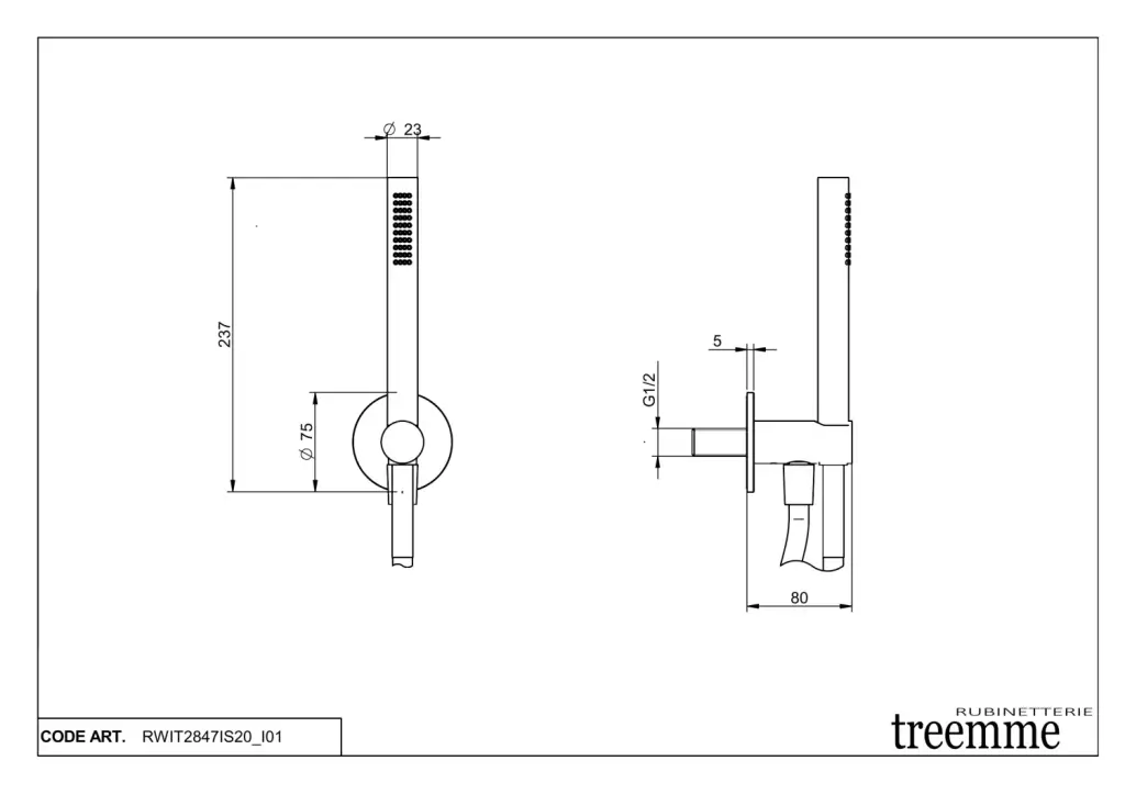 Treemme Showers Inox Душевой гарнитур: душевая лейка 1 вид струи, шланг, цвет: нержавеющая сталь RWIT2847IS20