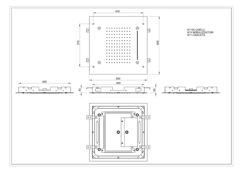 Treemme Showers Inox Потолочный душ встр. 50 см, 2 вида струи, функ. тумана, цвет: нержавеющая сталь ITRTBR308IS