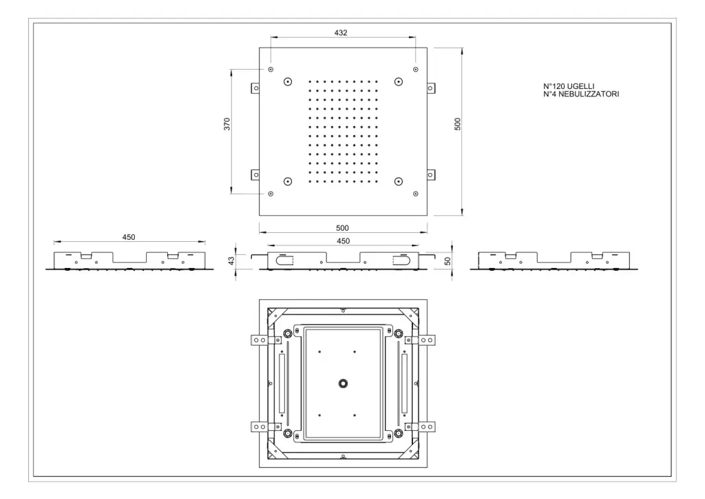 Treemme Showers Inox Потолочный душ встр. 50см, 1 вид струи, с функ. тумана, цвет: нержавеющая сталь ITRTBR307IS
