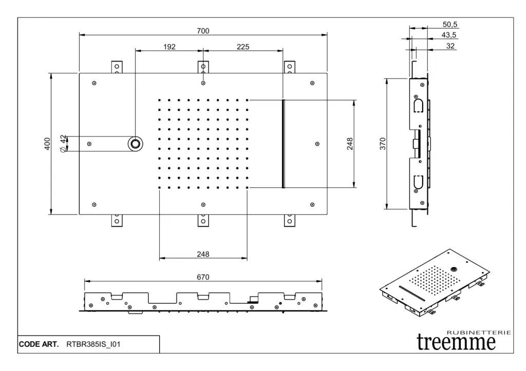 Treemme Showers Inox Потолочный душ встр. каскадный 70x40 см, 3 вида струи, цвет: нержавеющая сталь ITRTBR385IS