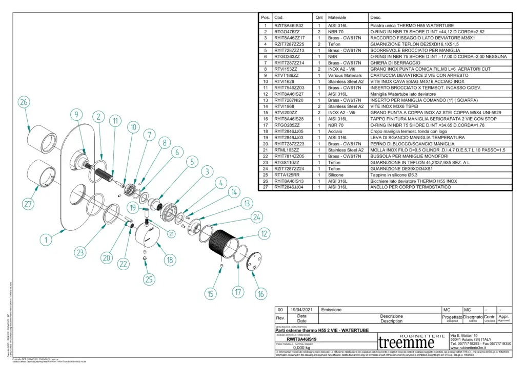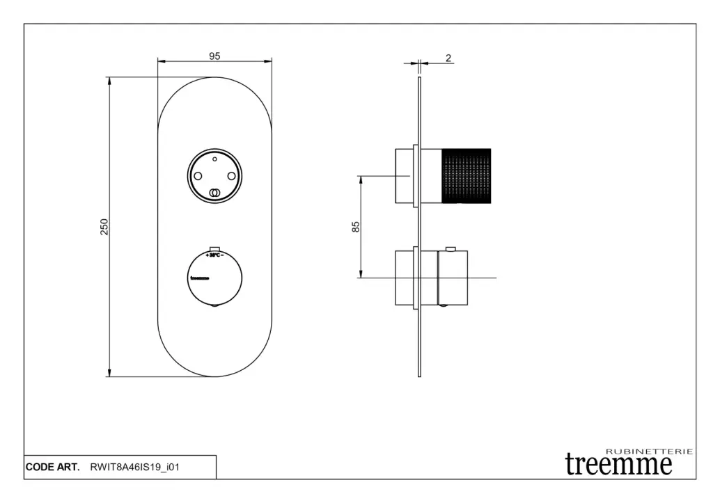 Treemme Showers Inox Смеситель для душа термостатический встр., 2 потреб., цвет: нержавеющая сталь RWIT8A46IS19