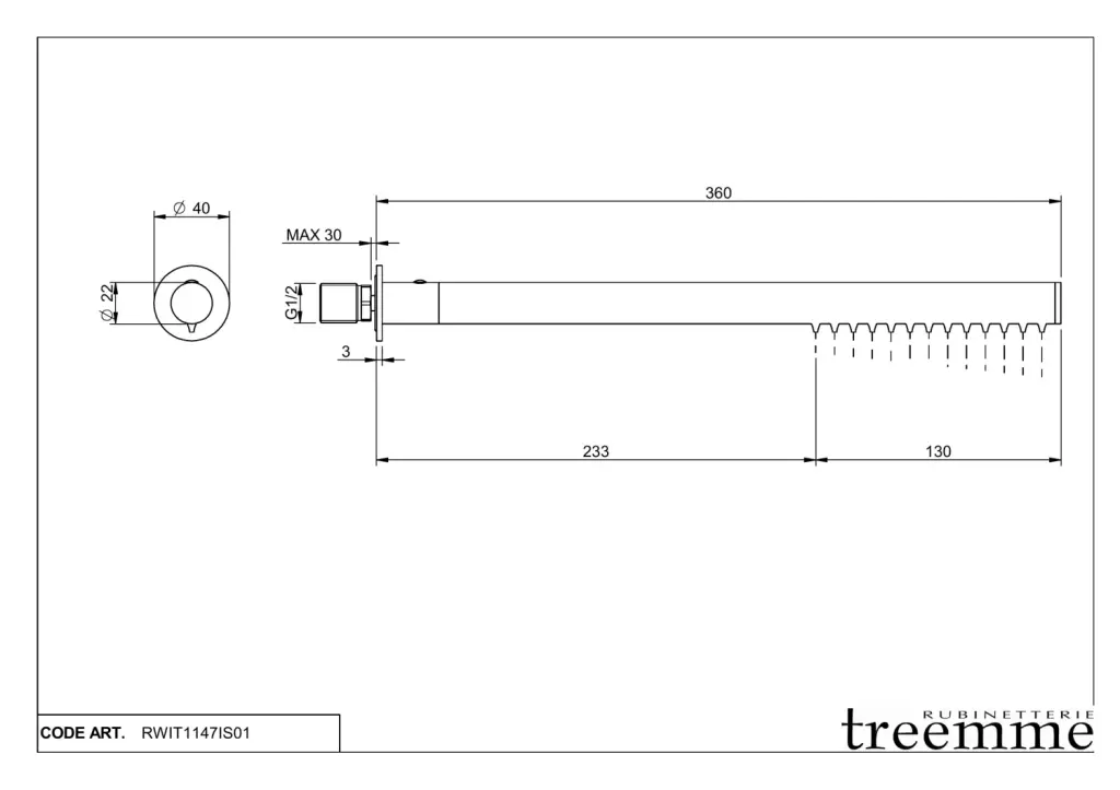 Treemme Showers Inox Верхний душ d25,5 см, 1 вид струи, кронштейн настенный, цвет: нержавеющая сталь RWIT6599IS05