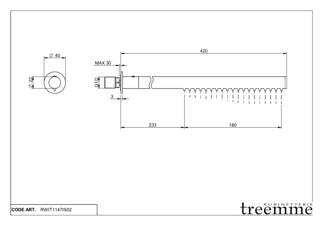 Treemme Showers Inox Верхний душ d25,5 см, 1 вид струи, кронштейн настенный, цвет: нержавеющая сталь RWIT6599IS05