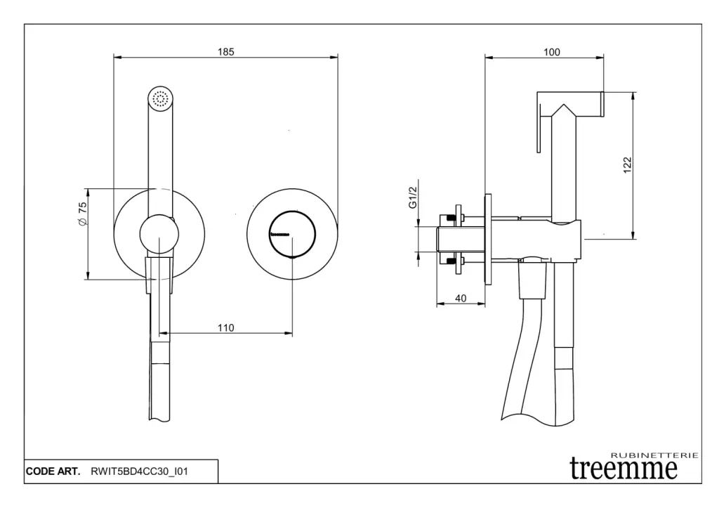 Treemme T30 Гигиенический душ со смесителем на 1 вид струи, цвет: chrome RWIT5BD4CC30