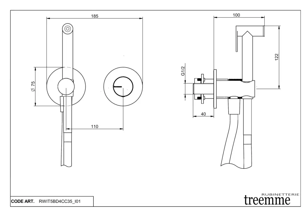 Treemme T30 Гигиенический душ со смесителем на 1 вид струи, цвет: chrome RWIT5BD4CC35