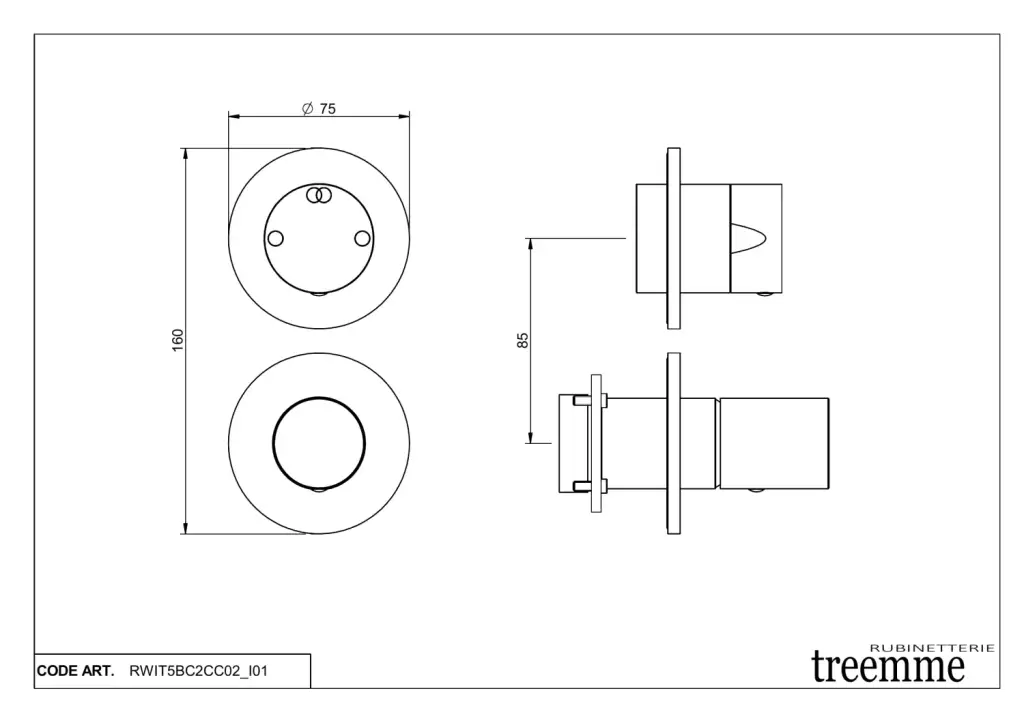 Treemme T30 Смеситель для душа термостатический встраиваемый, 2 потреб., внешняя часть, цвет: chrome RWIT5BC2CC02