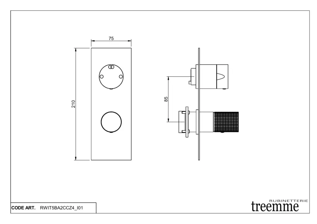 Treemme T30 Смеситель для душа термостатический встраиваемый, 2 потреб., внешняя часть, цвет: chrome RWIT5BA2CCZ4