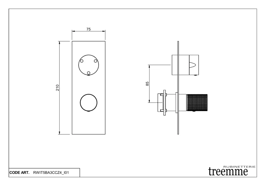 Treemme T30 Смеситель для душа термостатический встраиваемый, 3 потреб., внешняя часть, цвет: chrome RWIT5BA3CCZ4