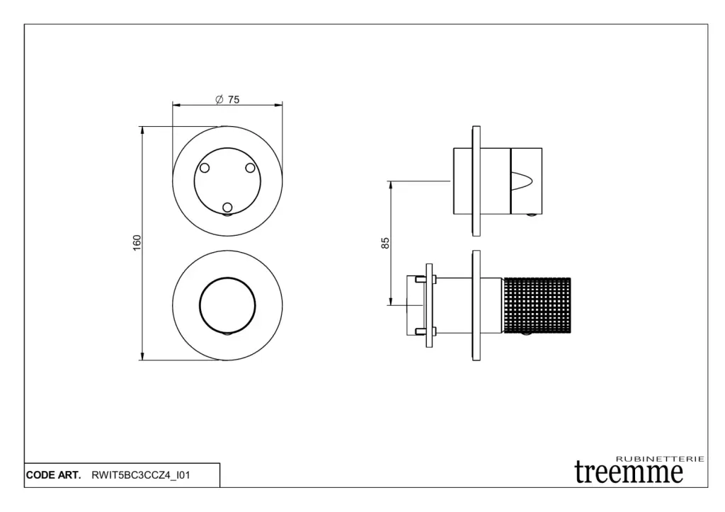 Treemme T30 Смеситель для душа термостатический встраиваемый, 3 потреб., внешняя часть, цвет: chrome RWIT5BC3CCZ4