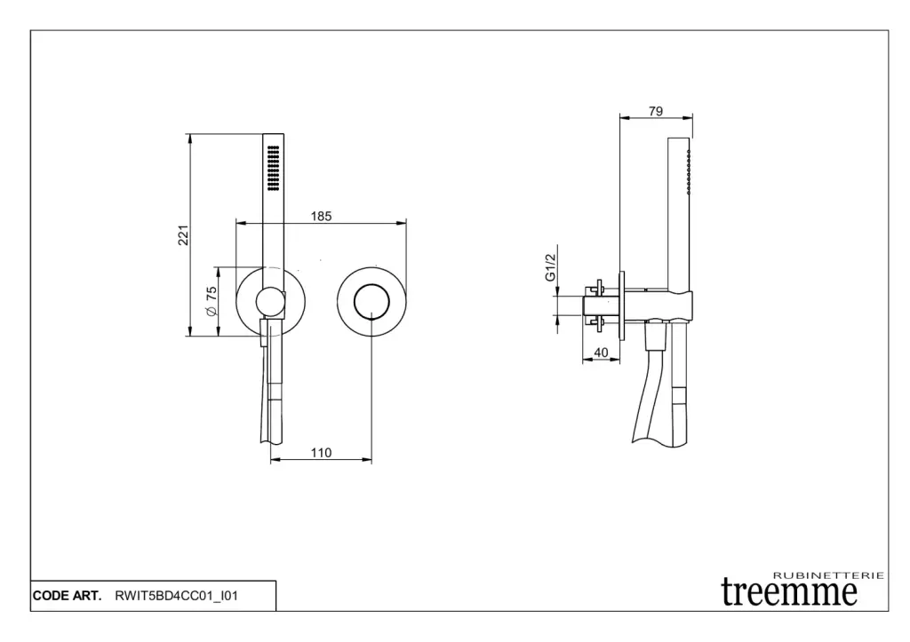 Treemme T30 Смеситель для душа встраиваемый, 1 потребитель, внешняя часть, цвет: chrome RWIT5BD4CC01