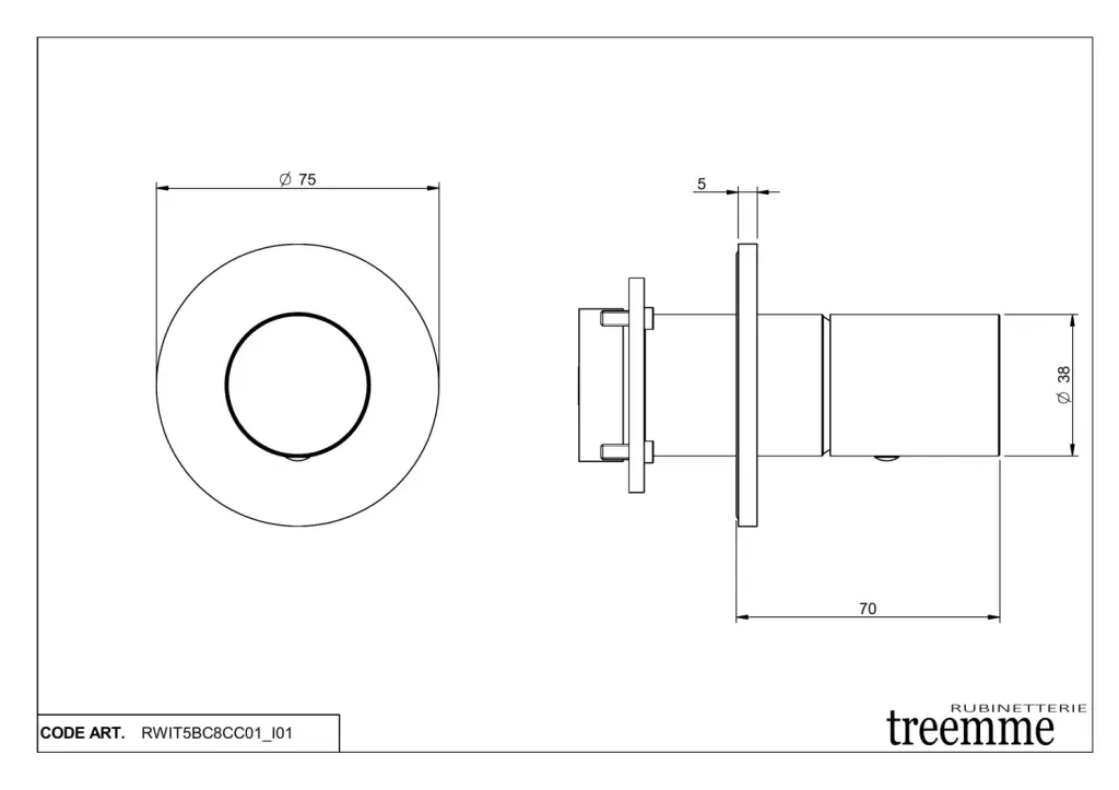 Treemme T30 Смеситель для душа встраиваемый, 1 потребитель, внешняя часть, цвет: chrome RWIT5BC8CC01